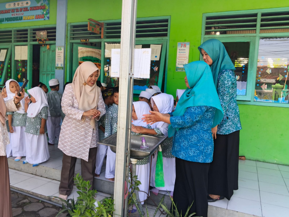 Dalam rangka memperingati Hari Cuci Tangan Pakai Sabun sedunia, TP.PKK Kelurahan Sukodono mengajari anak-anak TK Muslimat NU 07 Sukodono melaksanakan praktek Gerakan Cuci Tangan Pakai Sabun.