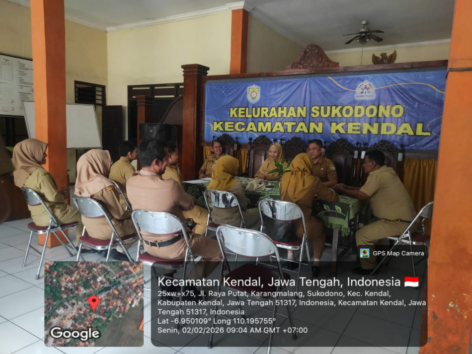 Lurah dan Perangkat Kelurahan Sukodono menerima Tim Pembina Administrasi Tingkat Kabupaten tahun 2026 dari BPKAD Kab Kendal, Bagian Pemerintahan Setda Kendal dan Bagian Hukum Setda Kendal. Ketua Tim Bp. Drs. Sigit Sulistiyanto,MM mengatakan bahwa Tujuan utama pembinaan administrasi kelurahan adalah meningkatkan tertib administrasi, kinerja perangkat, dan kualitas pelayanan publik agar lebih profesional, efektif, dan efisien sesuai peraturan perundang-undangan. Objek yang menjadi sasaran pembinaan yaitu Administrasi Keuangan, Administrasi Hukum, Sosial Media dan administrasi Pelayanan Umum.Pembinaan pada jam 09,00 s/d 11.00 WIB. berlangsung dengan lancar.