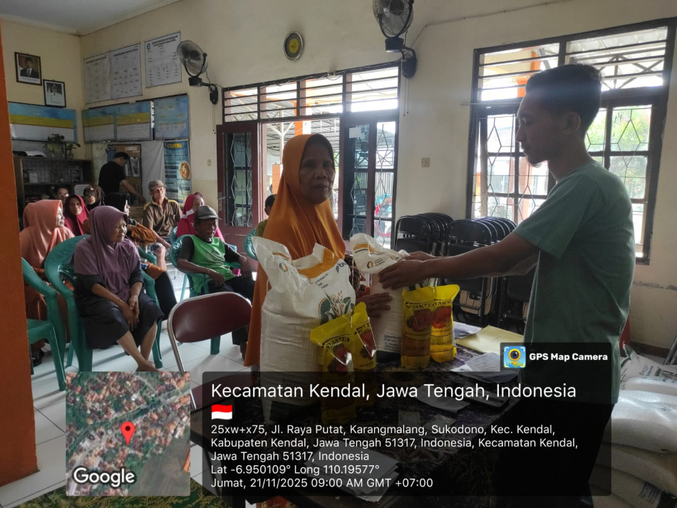 Alhamdulillah Pembagian Bantuan Pangan kepada 121 KK Kurang mampu berjalan dengan lancar, Hari ini 21-11-2025 mulai jam 08.00 WIB. Untuk 2 bulan yang diterimakan yaitu beras 20 kg dan Minyak goreng 4 liter, Pembagian oleh petugas verifikator Sdr Suryo Hadi Nugroho dibantu perangkat Kelurahan Sukodono.
